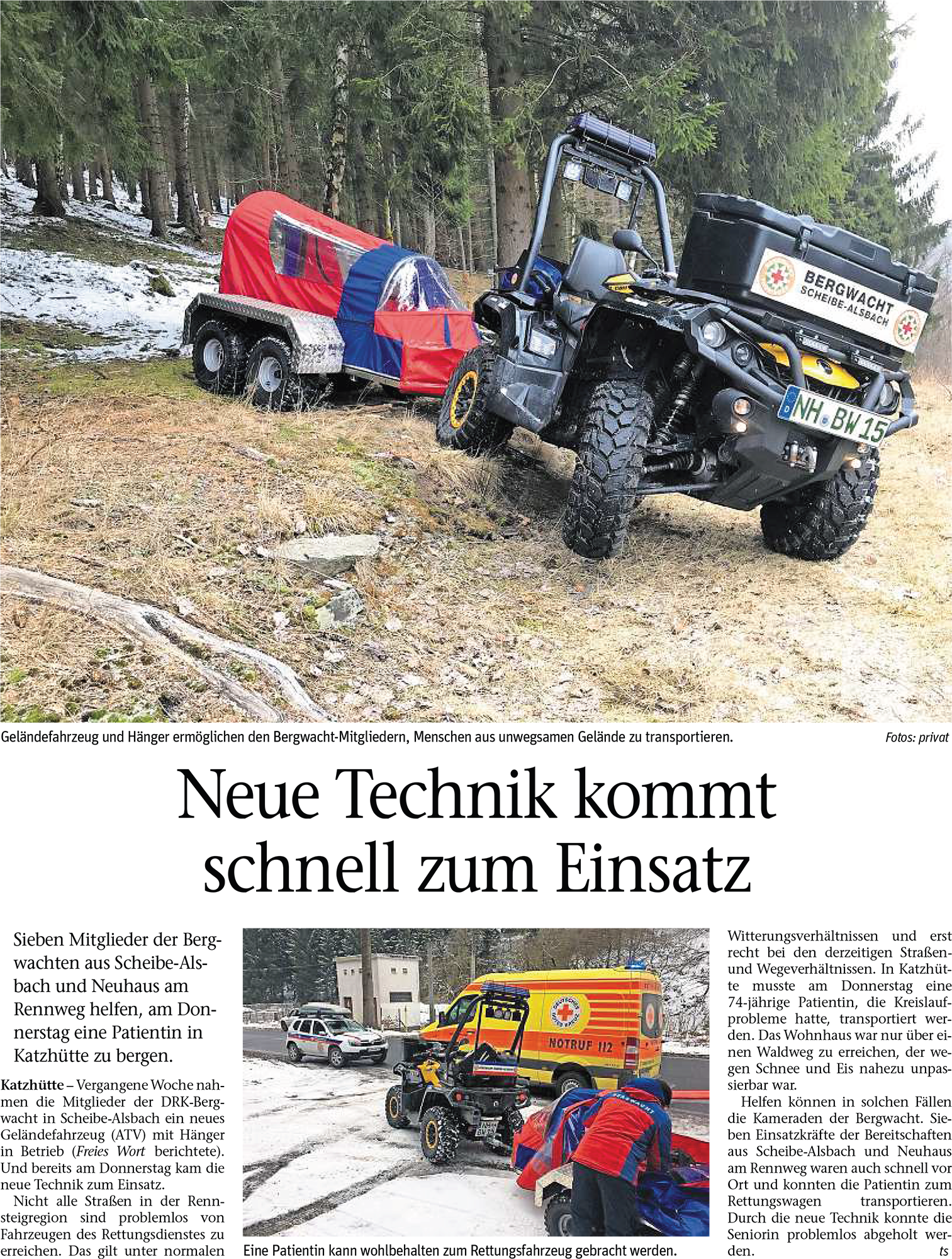 Ein ATV fuer die Bergwacht - Freies Wort vom 13.03.2018