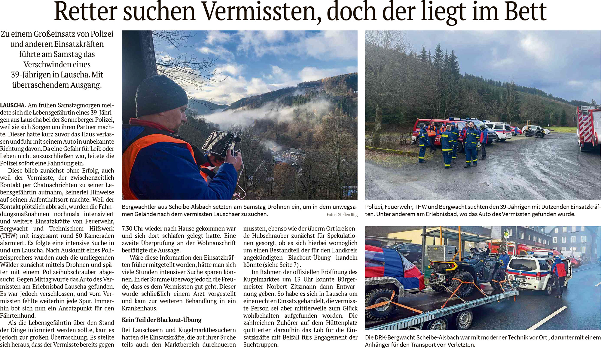 Hinweis aus der Bevölkerung beendet Vermisstensuche - Freies Wort vom 25.07.2020